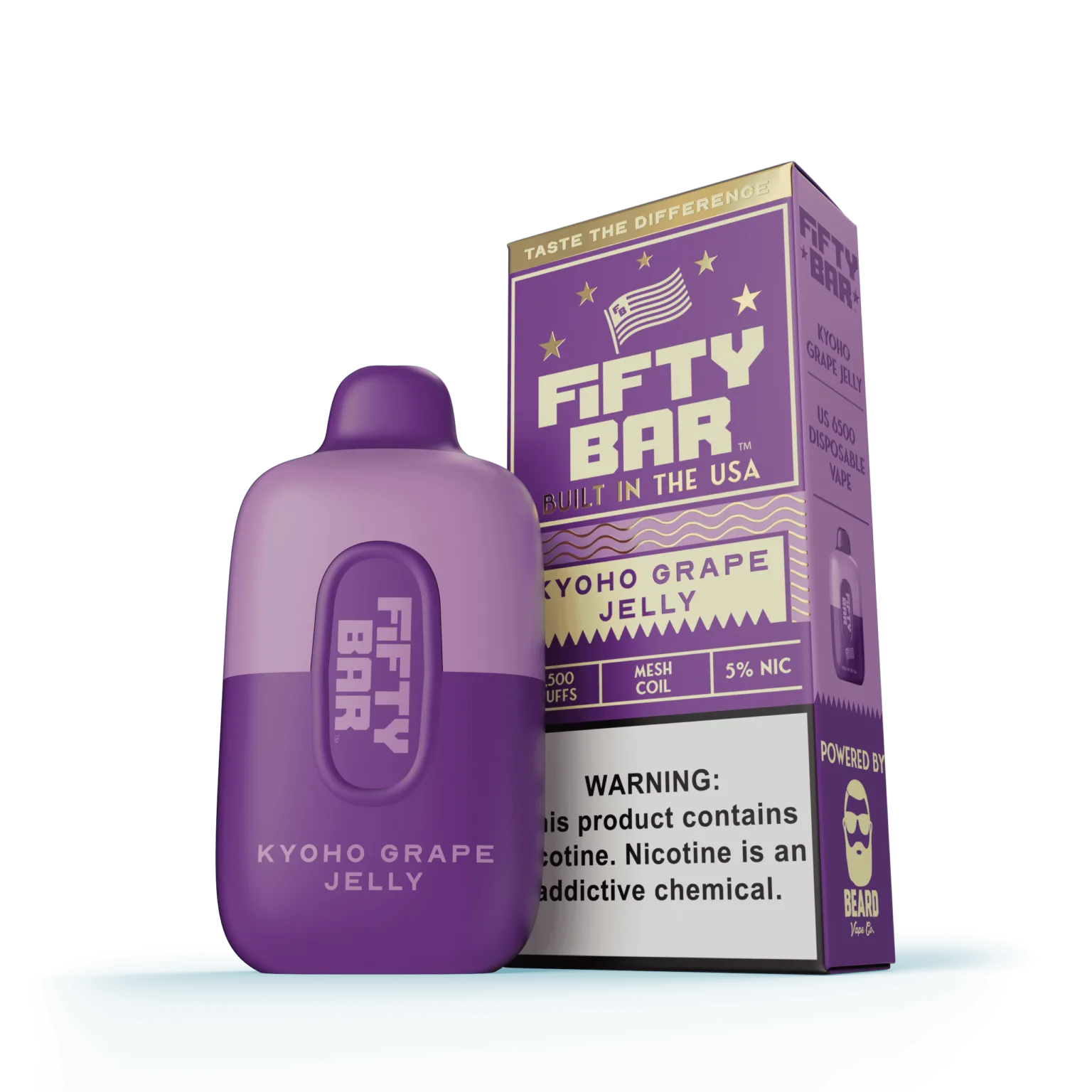 Built with quality and performance in mind, the Fifty Bar Original Series is proudly built in the USA using premium American-made ingredients. This commitment to excellence ensures that every hit of Kyoho Grape Jelly is consistent, flavorful, and satisfying.
