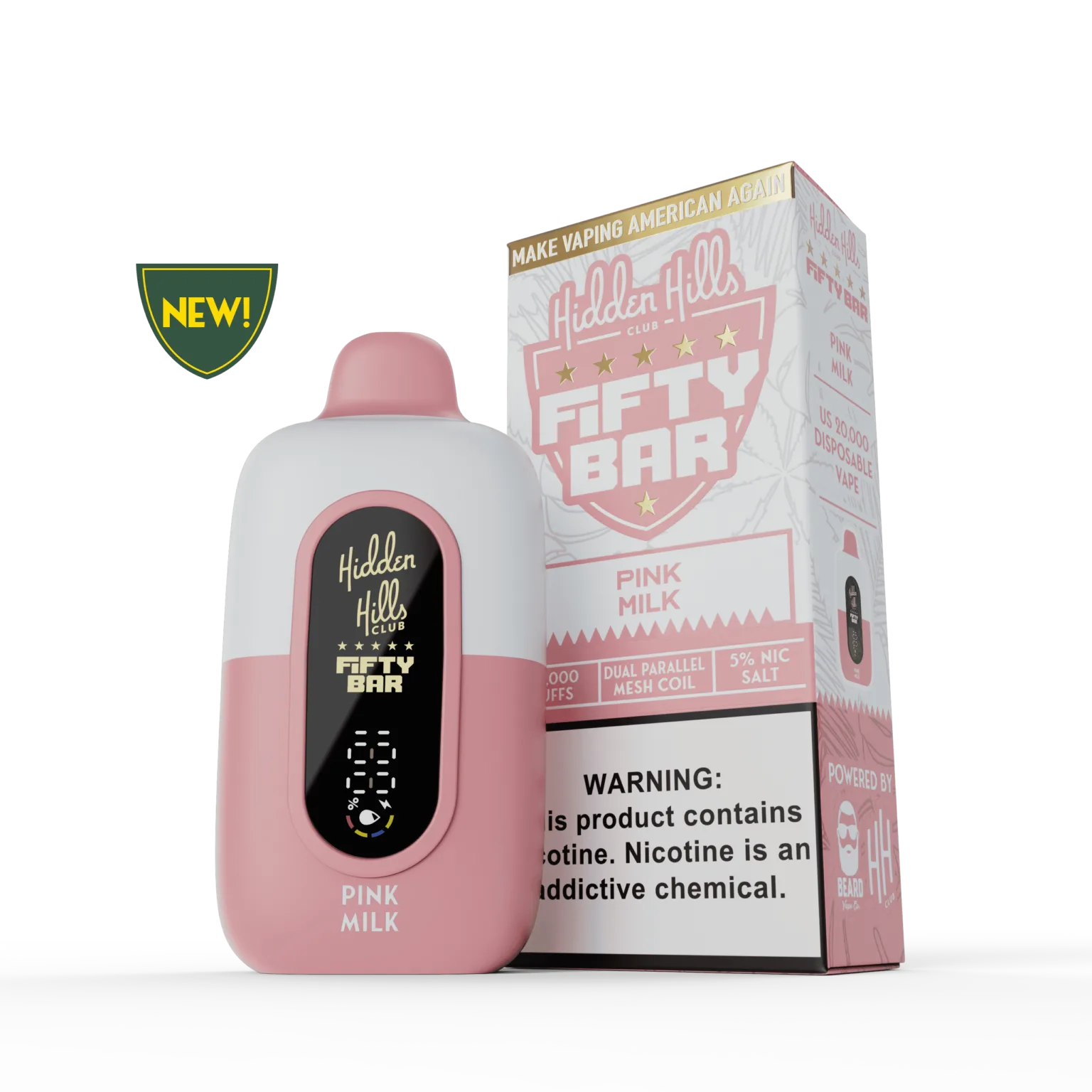 Pink Milk by Fifty Bar x Hidden Hills is where American craftsmanship meets nostalgic indulgence. This standout flavor from the exclusive Hidden Hills x Fifty Bar 20K collaboration delivers a velvety, creamy profile reminiscent of classic strawberry-infused milk. Unlike typical fruit disposables, Pink Milk offers a smooth, dessert-like finish that is meticulously formulated by U.S. master blenders.