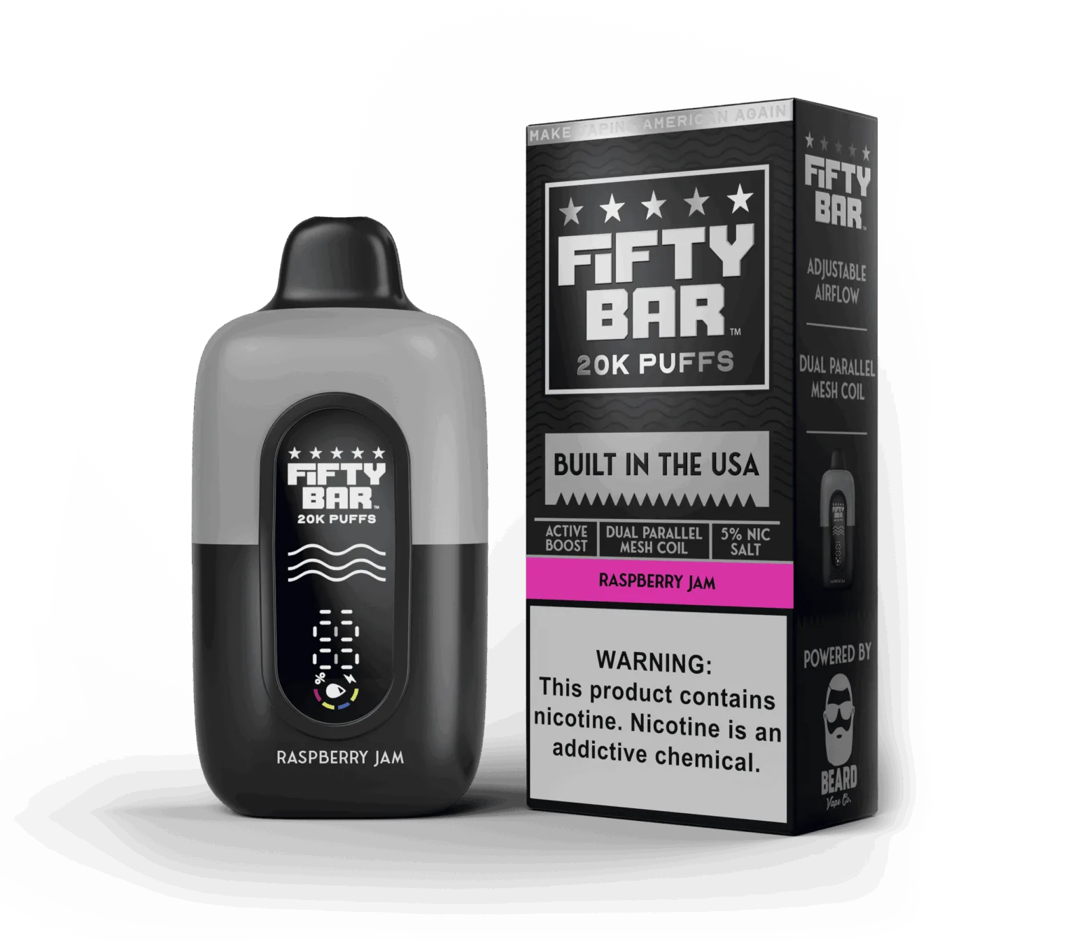 As the first disposable vape assembled in the USA, Fifty Bar sets the gold standard for quality and safety. If you are looking for a premium salt nic vape that combines high-capacity performance with the artisanal taste of raspberry preserves, the Raspberry Jam Black Series is your new all-day vape.